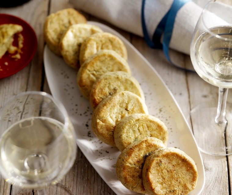 Pincelar con huevo y freír las galletas de queso en el medio del horno en unos 15 minutos hasta que se doren. Servir tibio.