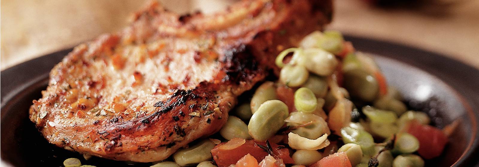 Chuletas De Cerdo A La Parrilla Con Habas