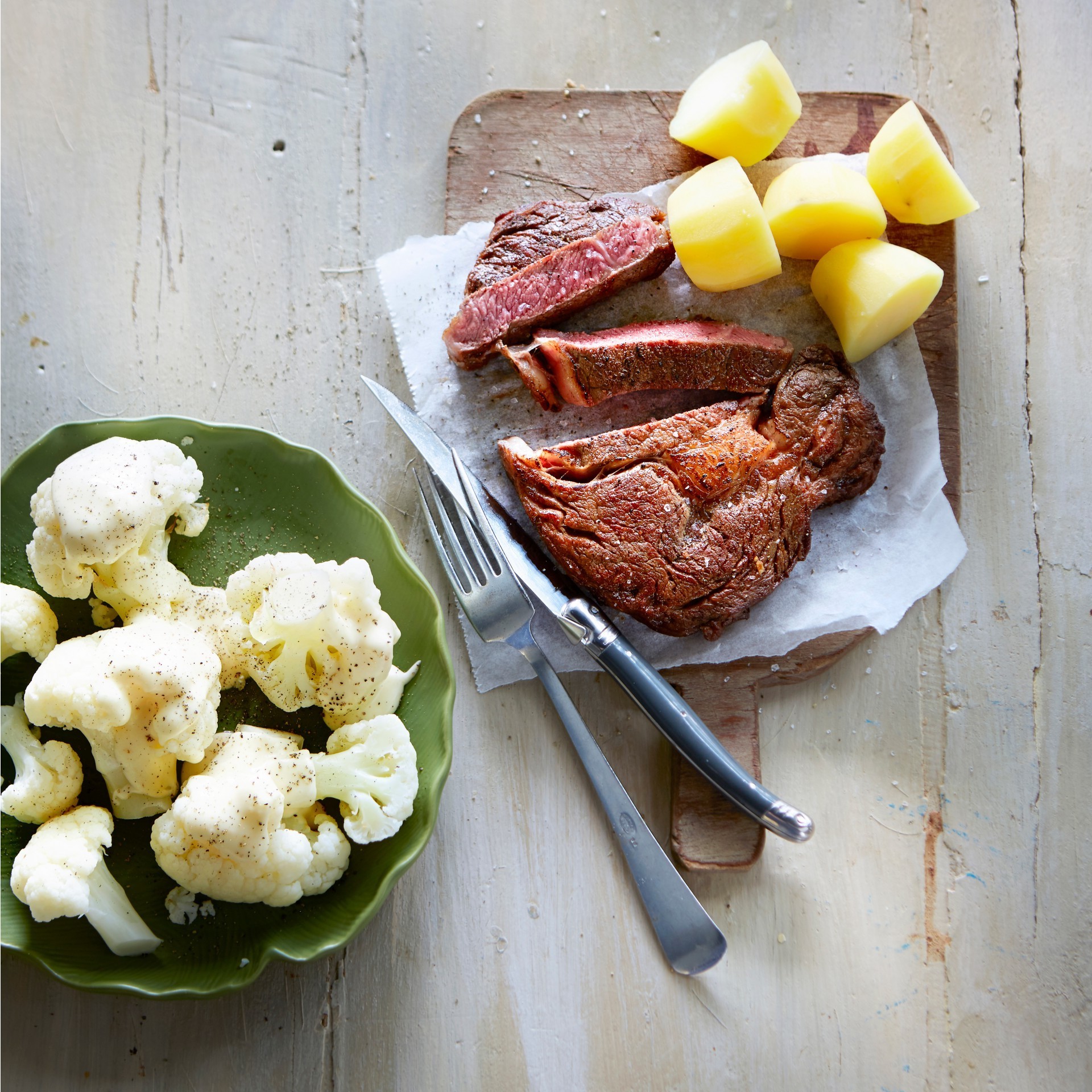 Chuletón Con Salsa De Coliflor Y Queso