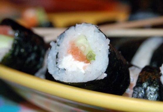 Si está usando atún o salmón dentro de los rollos, córtelos en trozos pequeños.
