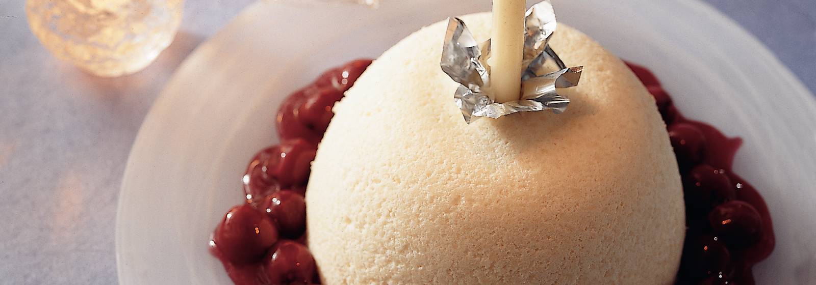 Crema de arroz con leche con salsa picante de cerezas
