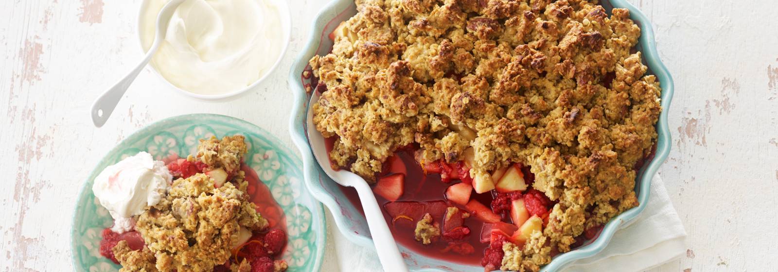 Crujiente de avena con sirope de arce y fruta
