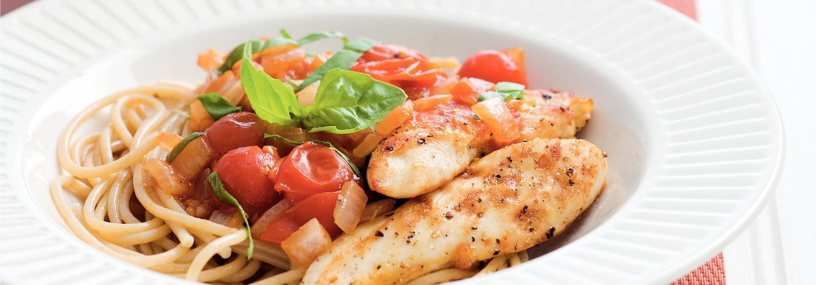 Espaguetis Con Filete De Pollo En Salsa De Pomodorini