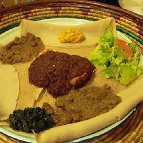 Este es el pan básico de Etiopía. Tradicionalmente se hace con teff, una harina de mijo muy finamente molida. La harina de mijo regular de una tienda de alimentos saludables funcionará bien. Use este pan para absorber los sabores de los guisos picantes.