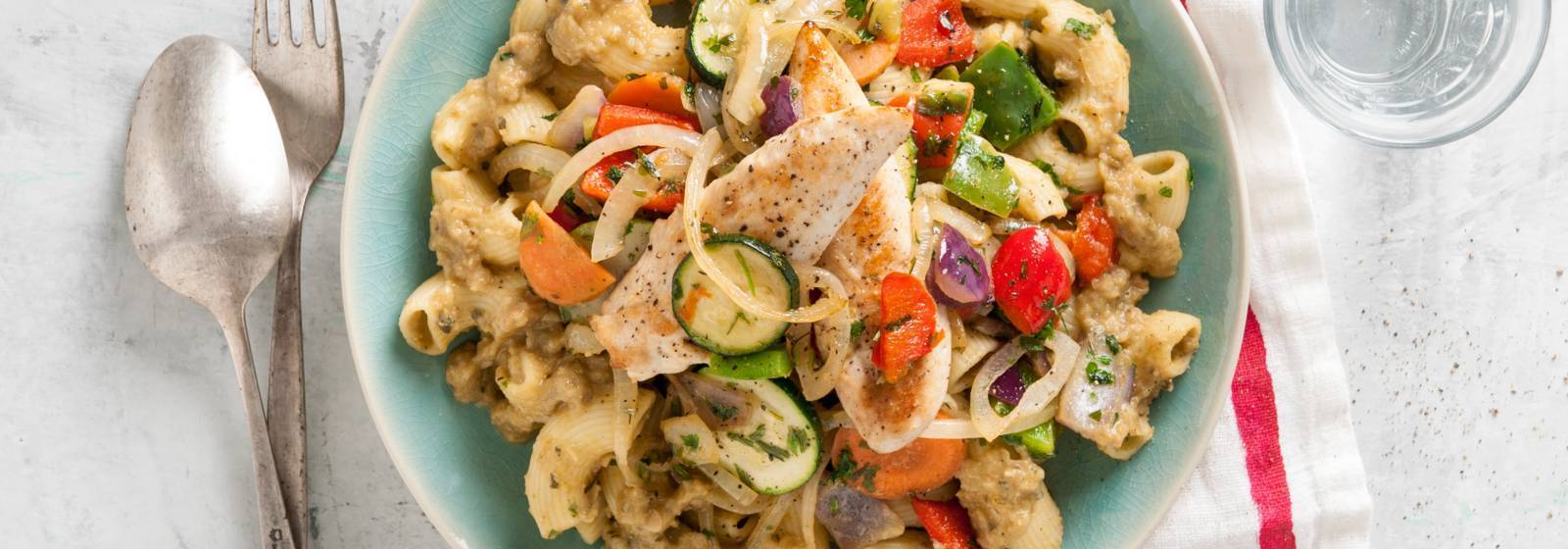 Macarrones Grandes Con Pollo Y Una Salsa De Verduras Ricas