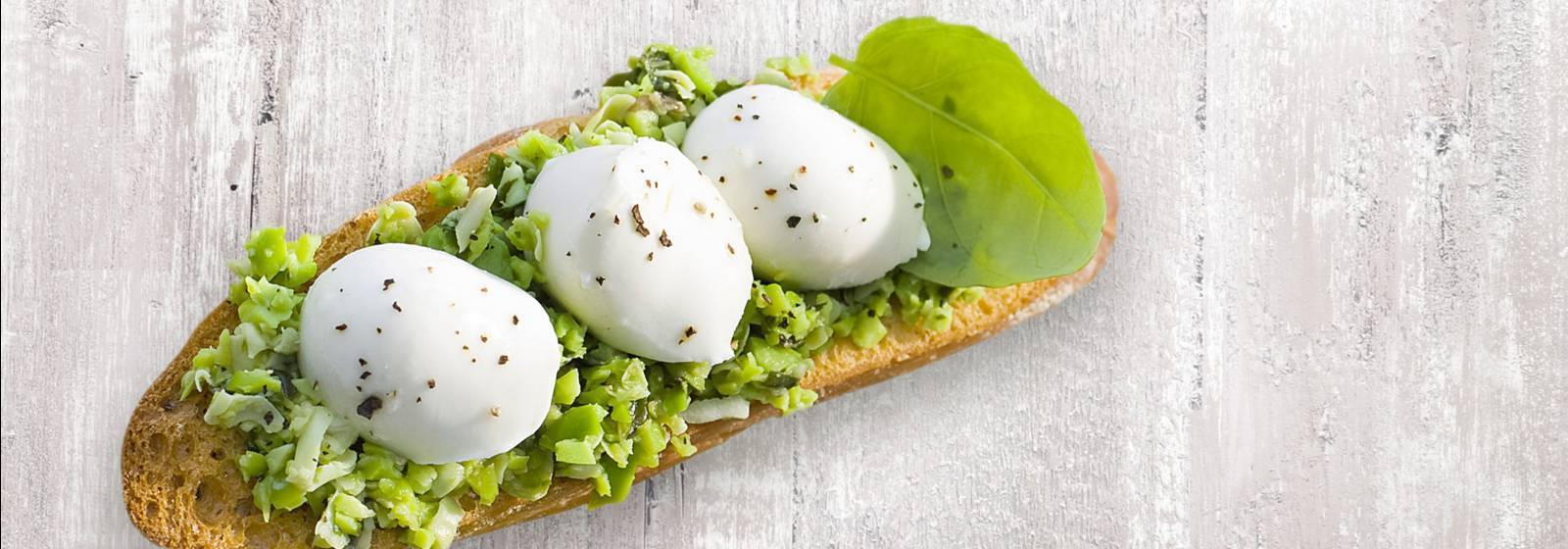 Mozzarella De Bruschetta, Habas Y Albahaca