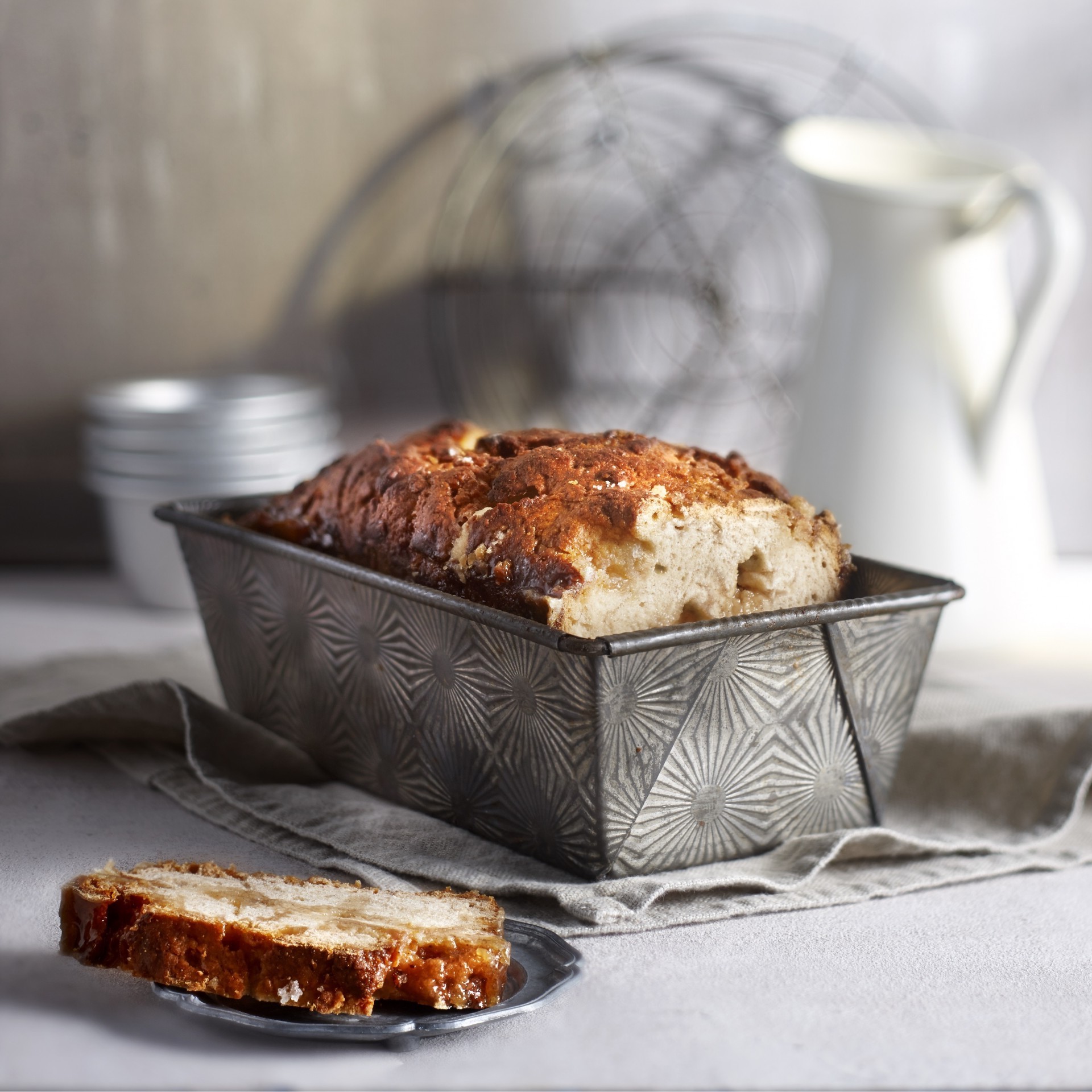 Coloque los cubos de azúcar en una bolsa resistente y almacénelos un poco más pequeños. Exprese la masa en una pieza gruesa, divida los cubos de azúcar, enrolle y amase. Espolvorear con el azúcar granulada. Presiona la masa nuevamente en un pedazo de tela. Enrolle, colóquelo con la costura en el molde y cúbralo durante aproximadamente 45 minutos hasta que el volumen se duplique.