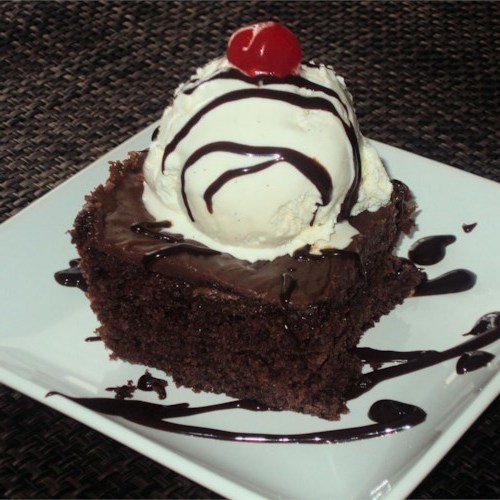 Esta receta me la dio la vecina de mi madre, Sharon Kelley. Es la mejor receta de pastel de chocolate que he probado en mi vida.