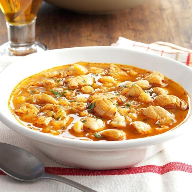 Esta sopa de cocción lenta también se denomina "posole", una comida tradicional de Año Nuevo de buena suerte en mi nativo Nuevo México. Todos lo hacen de manera diferente: mi sopa responde a la vieja pregunta del chili, "¿Roja o verde?" ¡utilizando ambos! —Janet Christine McDaniel, Arlington, Texas