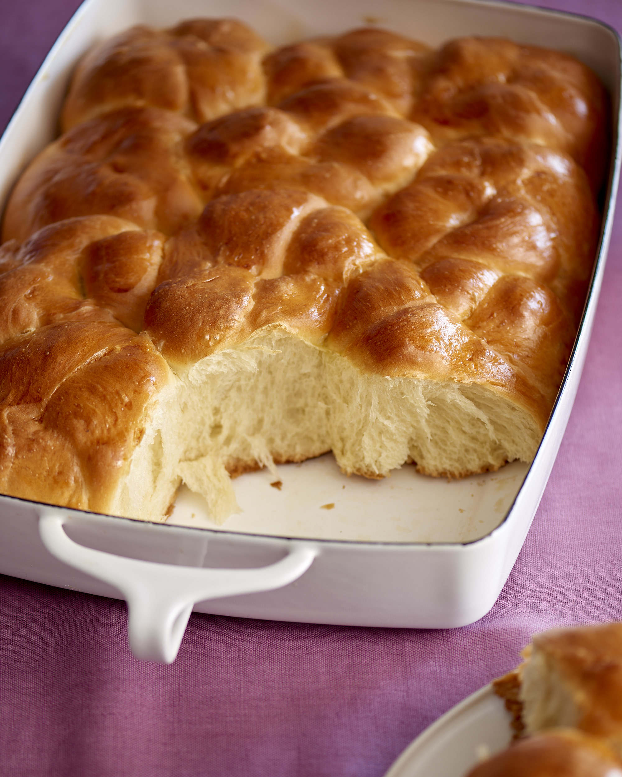 Destape los rollos y pincele con una fina capa de huevo. Hornee los rollos durante 15 minutos. Gire el molde para hornear de adelante hacia atrás y hornee hasta que la parte inferior y la parte superior de los rollos estén doradas, aproximadamente 15 minutos más (horneado de metal). las bandejas se hornearán más rápido que el vidrio o la cerámica, así que verifíquelas antes). Coloque la bandeja en una rejilla de alambre y deje enfriar al menos 15 minutos antes de servir.