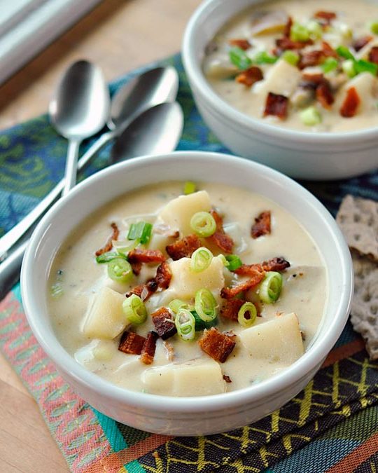 Sopa De Patata Al Horno Con Tocino, Cebolla Verde Y Cheddar