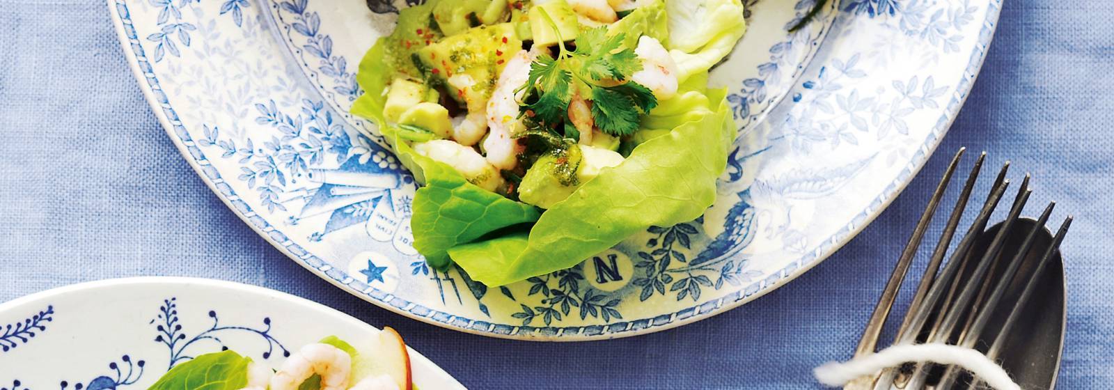 Poner el cóctel de camarones en las hojas de lechuga y servir..