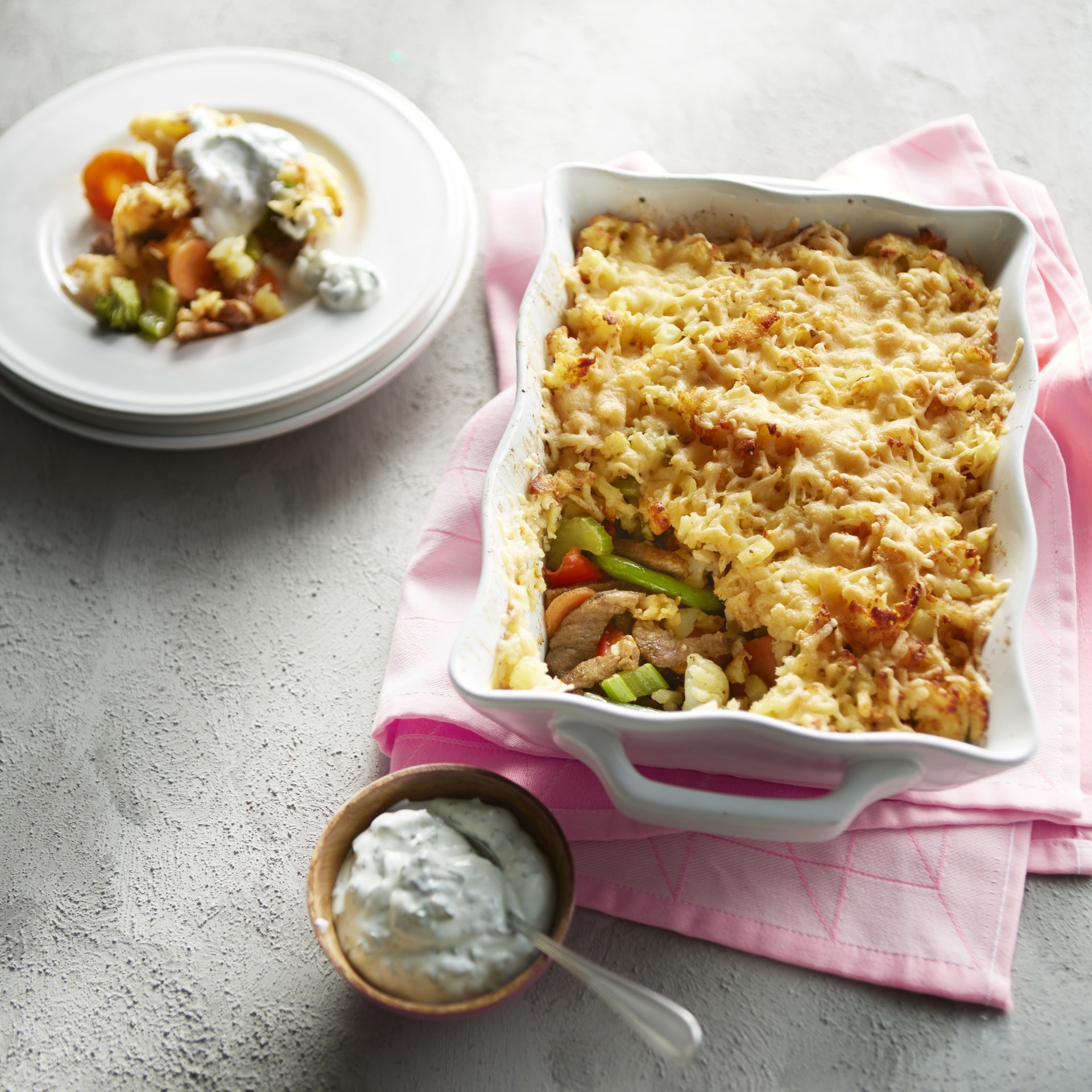 Extienda una capa de rösti sobre él y espolvoree con el queso.
