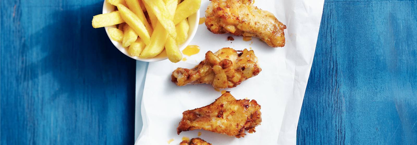 Coloque el recipiente en la barbacoa cuando esté caliente y deje que el pollo se cocine durante unos 12 minutos. Tiempos regularmente. Freír el pollo durante 2-3 minutos desde la bandeja directamente sobre la parrilla de la barbacoa para obtener una piel crujiente. Delicioso con papas fritas y judías verdes.