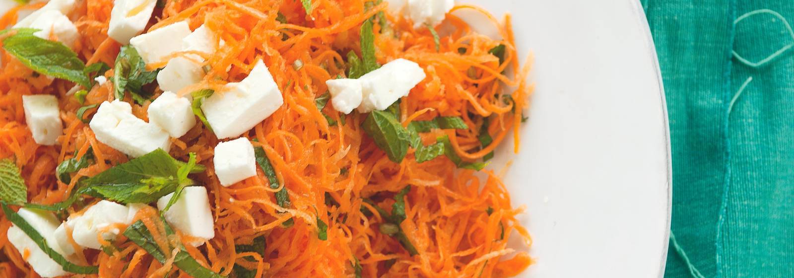 Zanahoria con aderezo de naranja y menta y queso blanco.